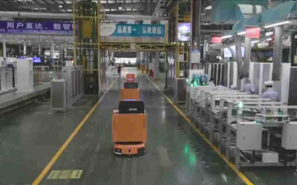 为车载冰箱物流配送打造的智能解决方案,,,,包含产中物流通过潜伏举升AMR搬运至线边,,,,产后成品物流智能仓储,,,,流程包含产中物流智能齐套入库,,,线边安灯叫料AMR智能配送至线边,,,成品入库、、、出库,,,,通过无人堆高车机器人,,,,智能仓储管理替代人工作业管理,,,,实现更高存储、、、更高效率、、更具柔性化的解决方案。。。。